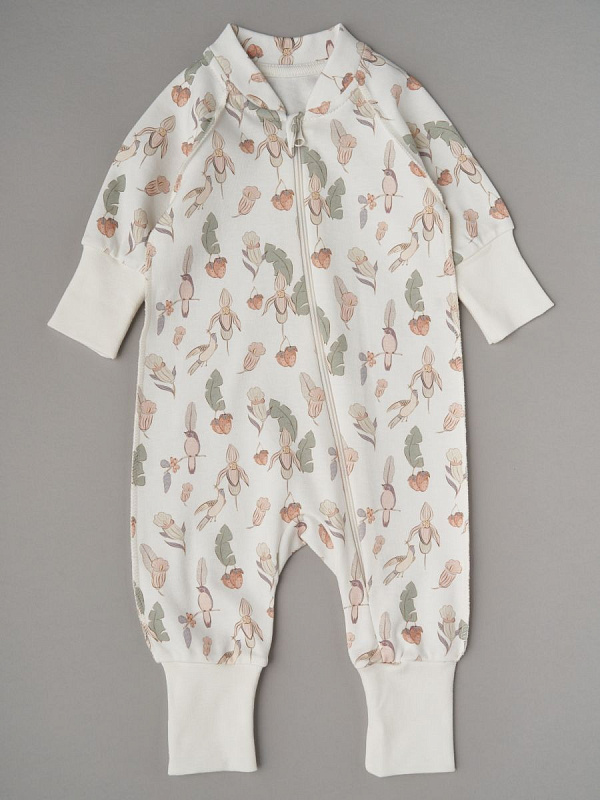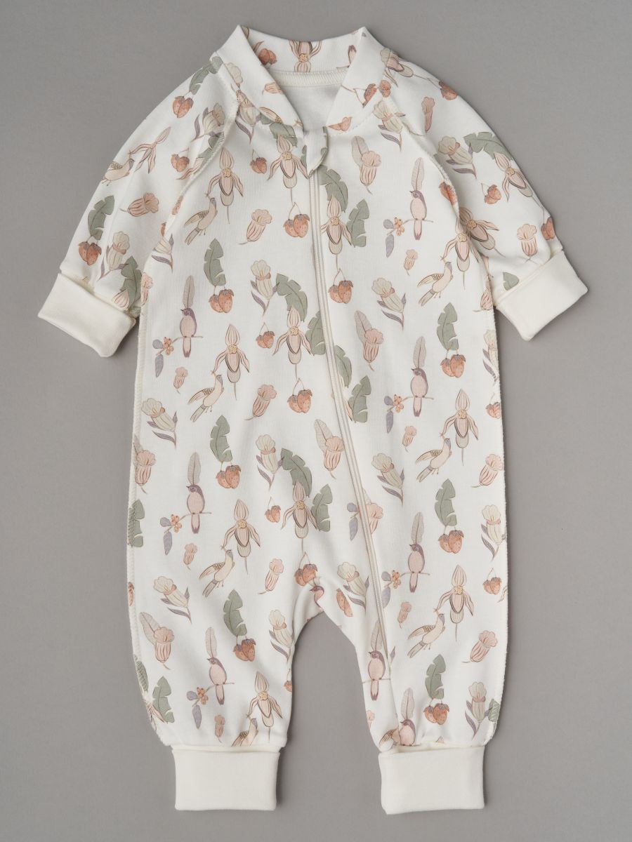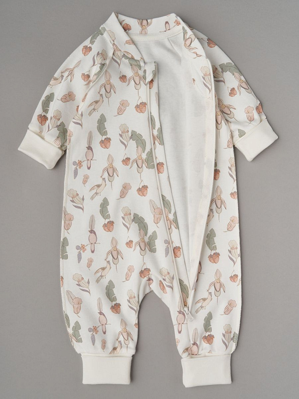 Комбинезон растущий на молнии Little Star интерлок 13016 (мз) цветочки, птички и клубнички, крем 68
