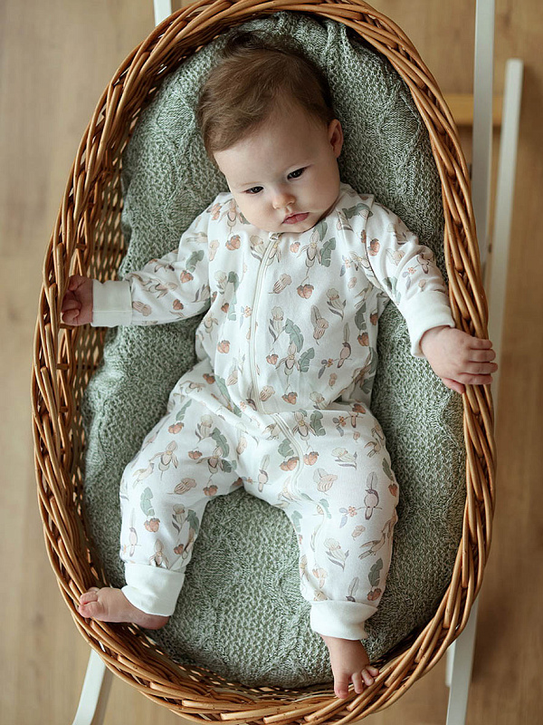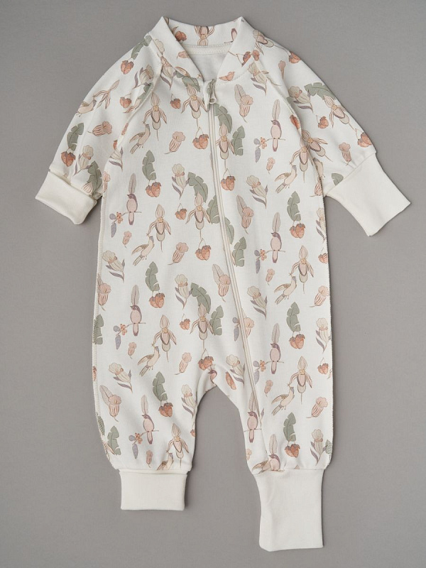 Комбинезон растущий на молнии Little Star интерлок 13016 (мз) цветочки, птички и клубнички, крем 68Нет оценокХарактеристики