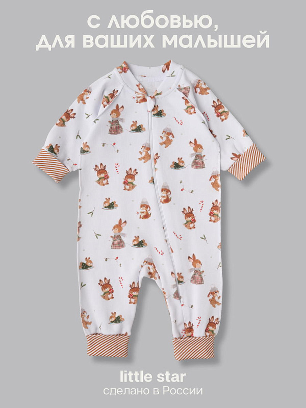 Комбинезон растущий на молнии Little Star Новогодние Зайки 13016 (ЧЗ-мз) белый 62