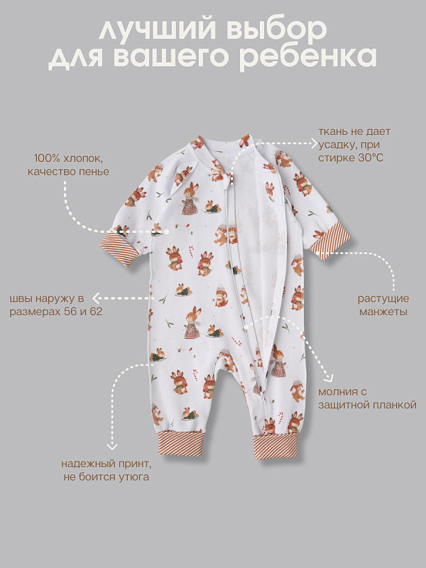 Комбинезон растущий на молнии Little Star Новогодние Зайки 13016 (ЧЗ-мз) белый 62Нет оценокХарактеристики
