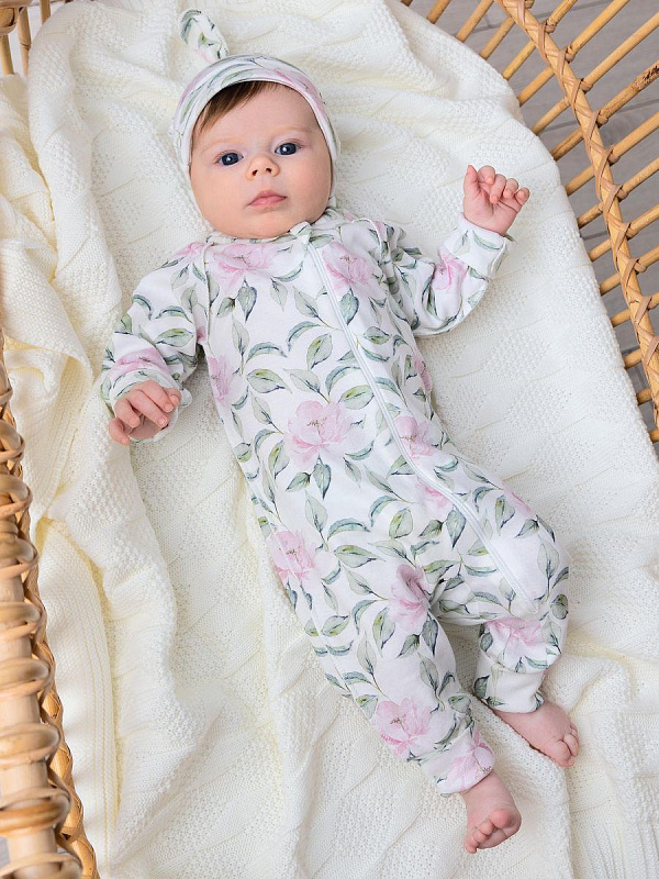 Комбинезон растущий на молнии Little Star Пионы 13016 (ЧЗ-мз) крем 56
