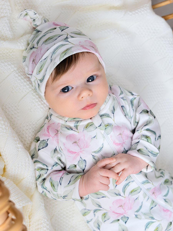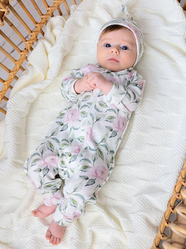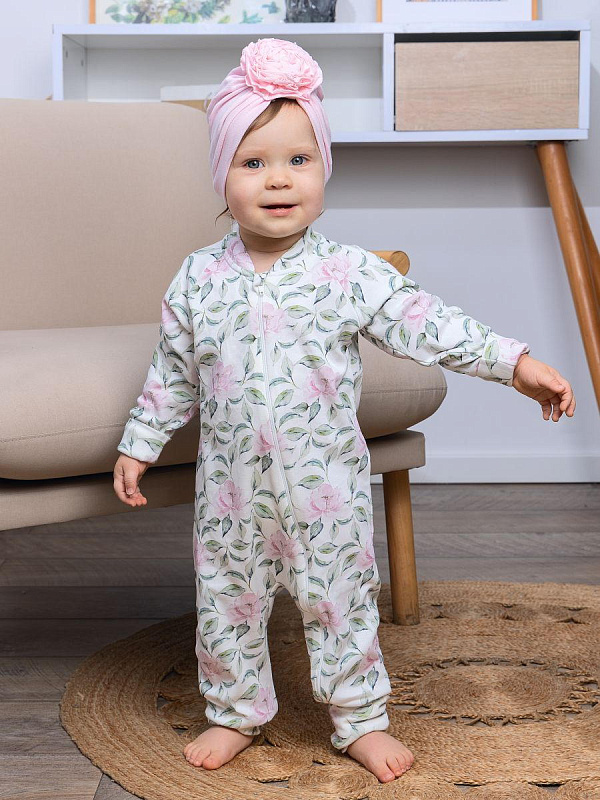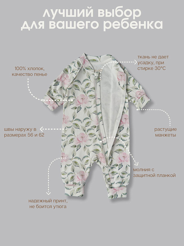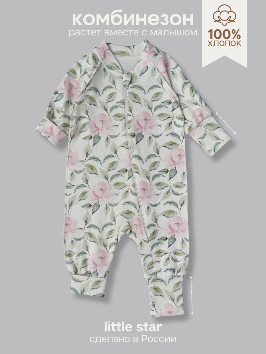 Комбинезон растущий на молнии Little Star Пионы 13016 (ЧЗ-мз) крем 74