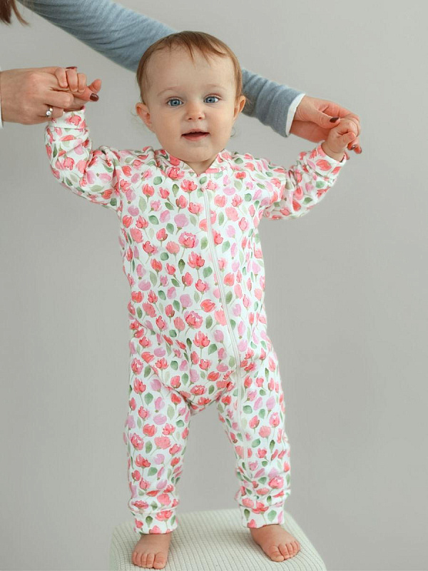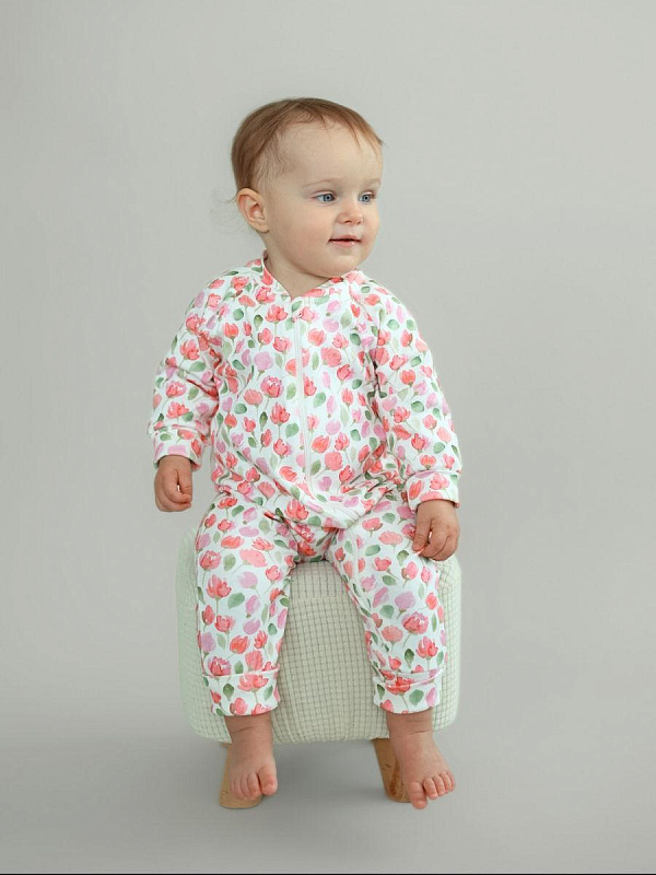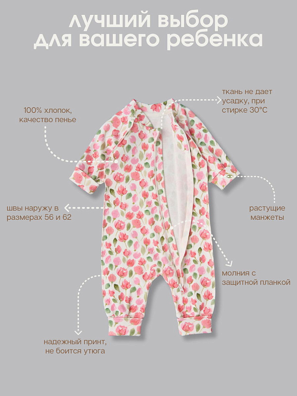 Комбинезон растущий на молнии Little Star Тюльпаны 13016 (ЧЗ-мз) крем 68