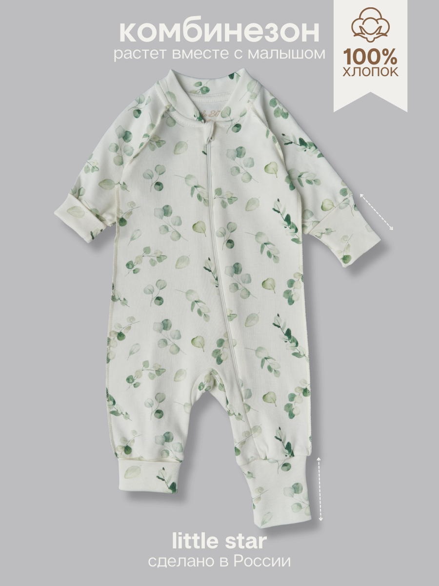 Комбинезон растущий на молнии Little Star Веточки 13016 (ЧЗ-мз) крем 56