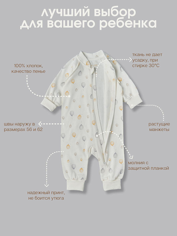 Комбинезон растущий на молнии Little Star Воздушные шарики 13016 (ЧЗ-мз) крем 56Нет оценокХарактеристики