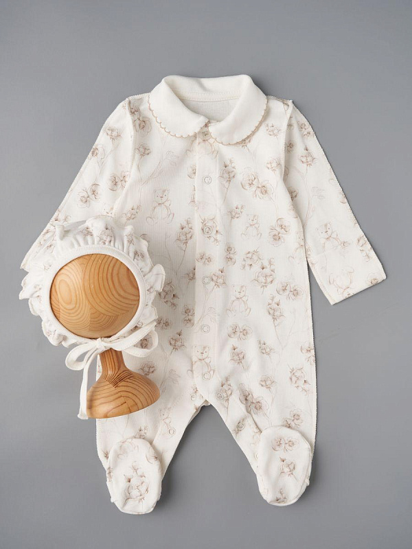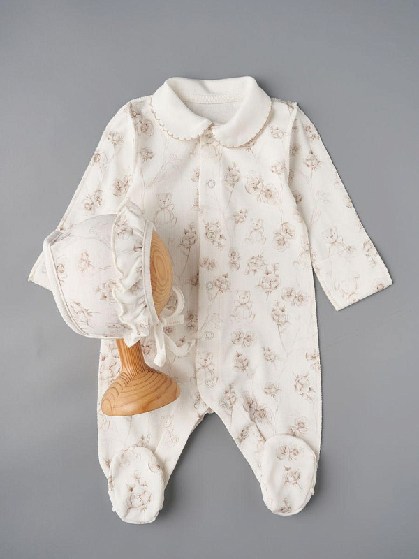 Комбинезон с чепчиком Little Star Мишки с цветочками 31834 (ЧЗ-мз) крем 56