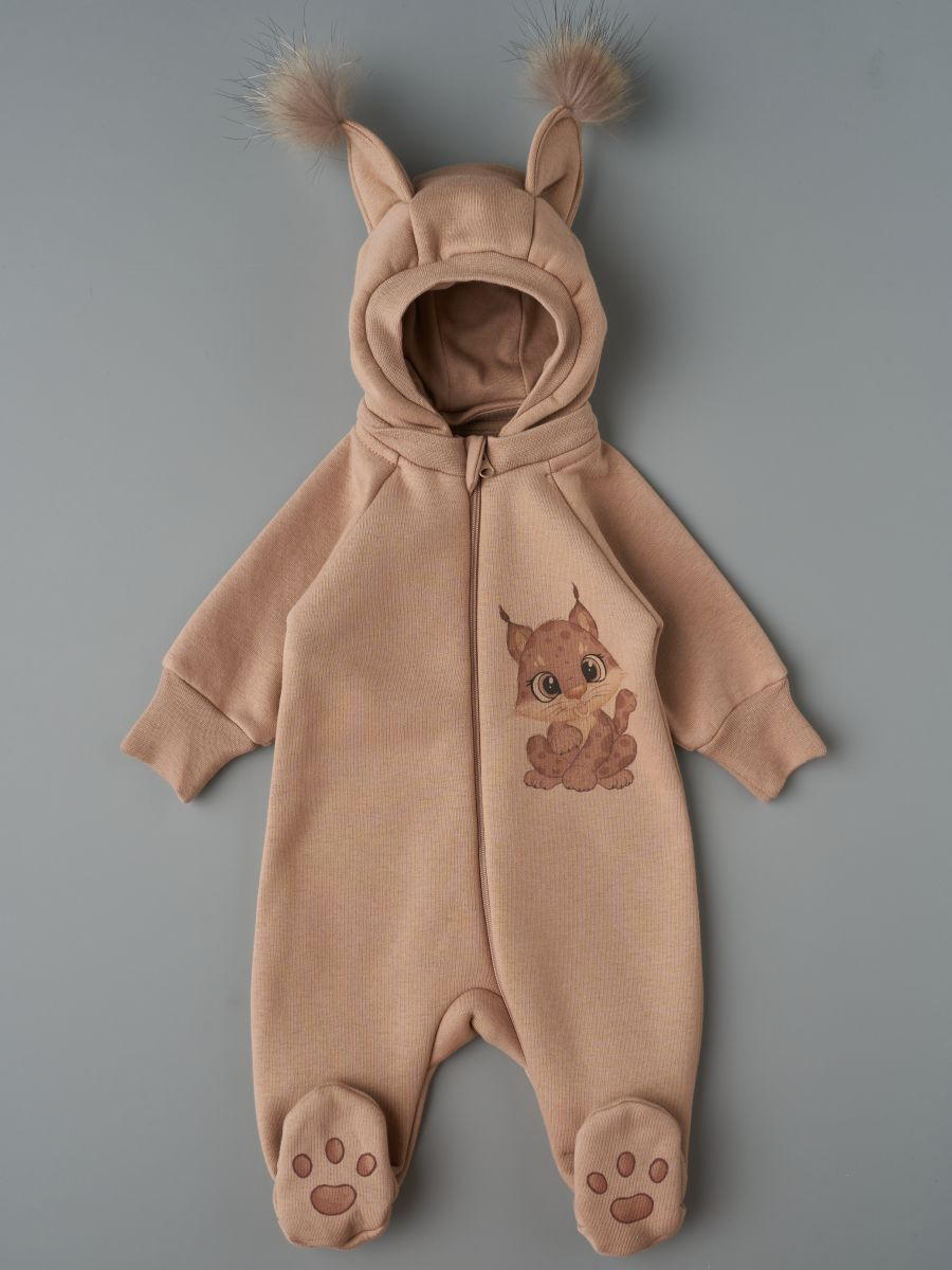 Комбинезон с отстегивающимся капюшоном футер с начесом Little Star Рысенок 823015 (ЧЗ-мз) бежевый 56
