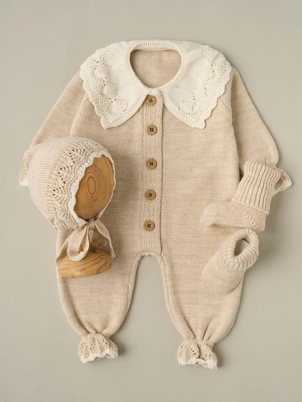 Комбинезон с воротником, чепчик, носочки Little Star Классик 807333 (ЧЗ-нк) слоновая кость/кремовый 56