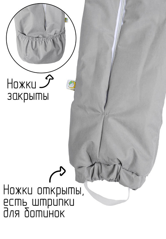 - Используйте комбинезон как самостоятельную одежду, так и в комплекте с меховым конвертом зимой