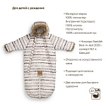 Комбинезон рассчитан на позднюю осень и зиму: до -5, -7 его можно использовать самостоятельно, а при температуре ниже -7 градусов дополнять теплым конвертом в коляску, который будет защищать от ветра и морозов. При этом не забывайте про правило многослойности: если вы планируете долгую прогулку даже не в самый сильный мороз, то обязательно одевайте малыша в термобелье, а при необходимости добавляйте второй слой - из флиса или шерсти.