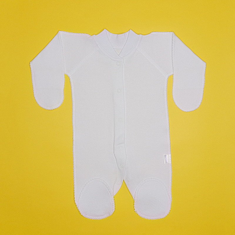 Комбинезончик для малыша изготовлен из натуральной ткани, которая хорошо пропускает воздух, позволяя телу дышать. Швы сделаны снаружи и не будут доставлять ребёнку неудобств. Можно носить дома или надевать как первый слой на прогулку. Мягкая приятная к телу ткань проста в уходе.