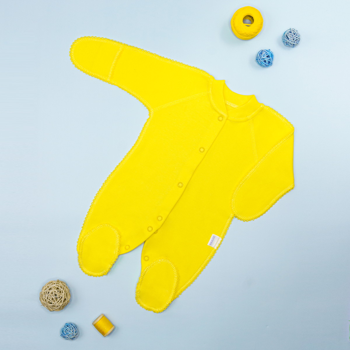 Комбинезончик для малыша изготовлен из натуральной ткани, которая хорошо пропускает воздух, позволяя телу дышать. Швы сделаны снаружи и не будут доставлять ребёнку неудобств. Можно носить дома или надевать как первый слой на прогулку. Мягкая приятная к телу ткань проста в уходе.