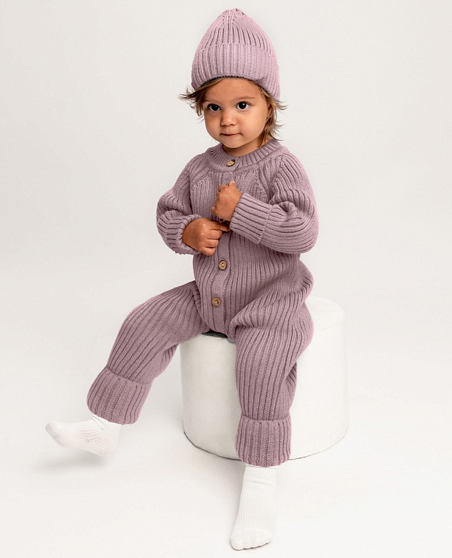 Комбинезон вязаный AmaroBaby Pure Love Tot демисезонный с шапочкой ЧЗ пудровый 86