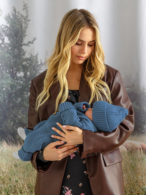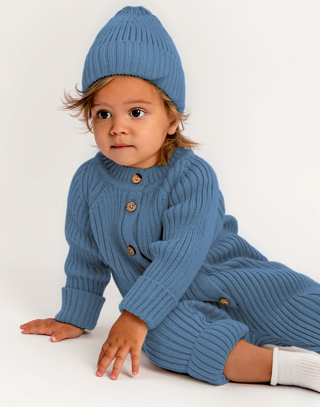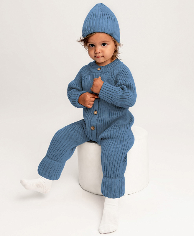 Комбинезон вязаный AmaroBaby Pure Love Tot демисезонный с шапочкой голубой 62