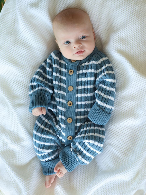 Комбинезон вязаный Little Star Косичка Полоска 83003 (ЧЗ-нк) индиго/белый 62
