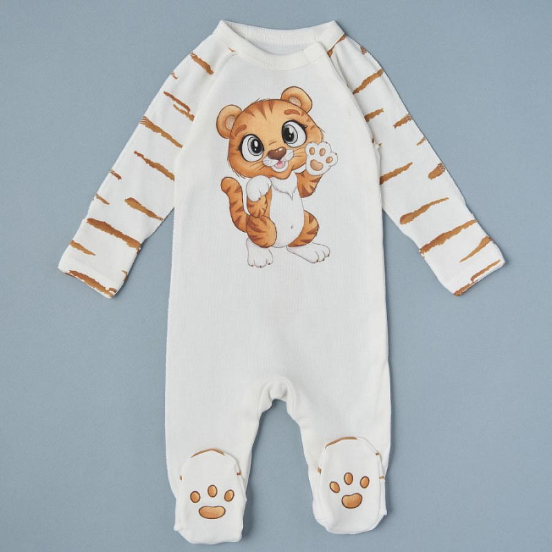 Комбинезон-асим на кнопках Little Star Тигренок 30-8692 (ЧЗ-мз) крем 56