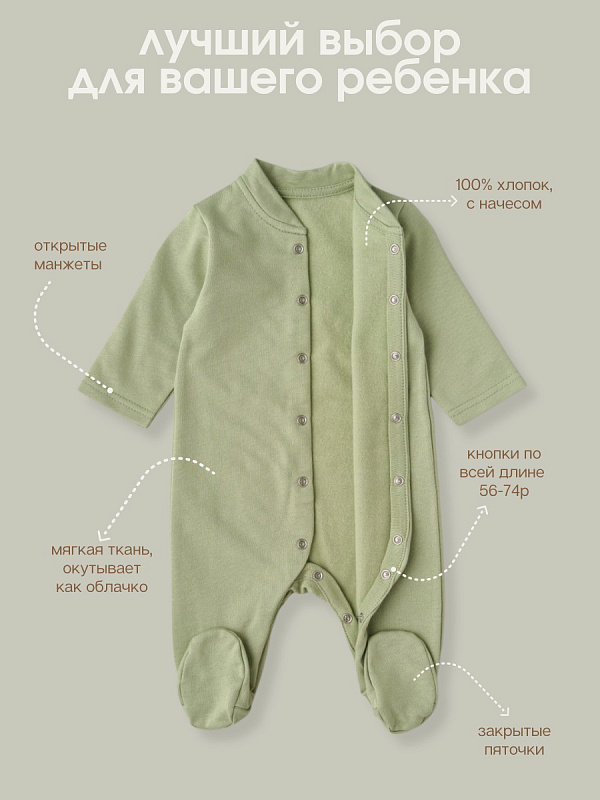 Комбинезон-стойка Little Star на кнопках 30521 фисташковый 62