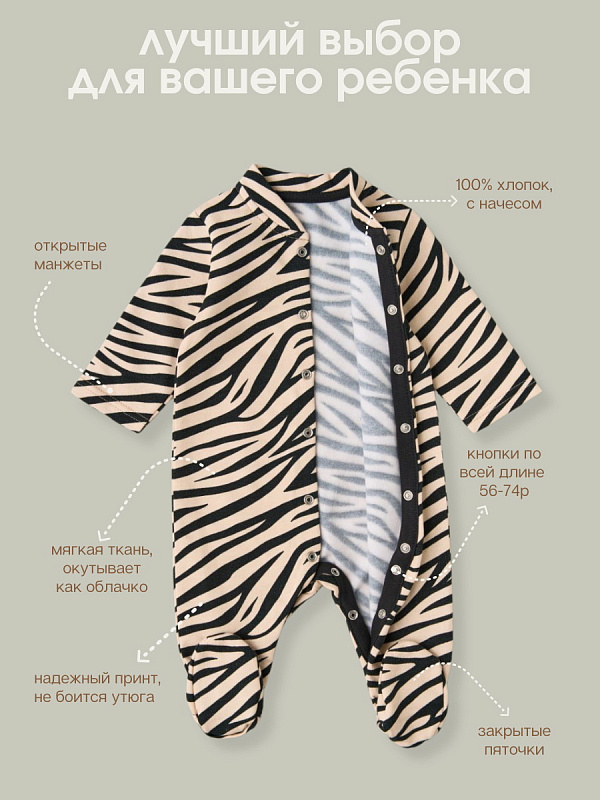 Комбинезон-стойка Little Star на кнопках 30521 зебра 68