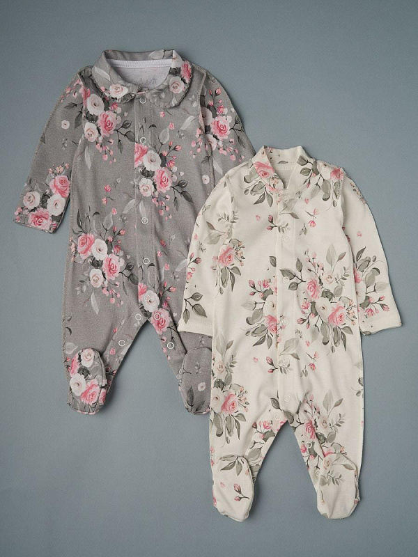 Комбинезон-стойка Little Star Цветы 2 шт 31031 (ЧЗ-мз) серый/белый 56