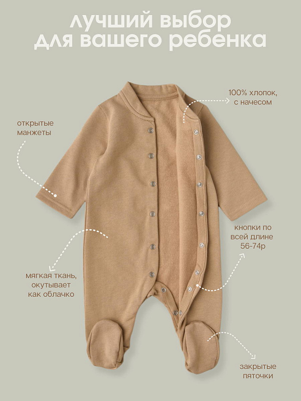 Комбинезон-стойка на кнопках Little Star 30521 (ЧЗ-мз) бежевый 68