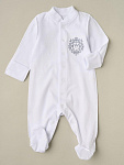 Комбинезон из нежного трикотажа, на кнопках с вышивкой. Удобная модель, позволит легко и быстро переодевать малыша. Кнопки расположены по центру, сверху донизу. Также, для удобства смены подгузника, мы предусмотрели кнопочки и между ножек.
