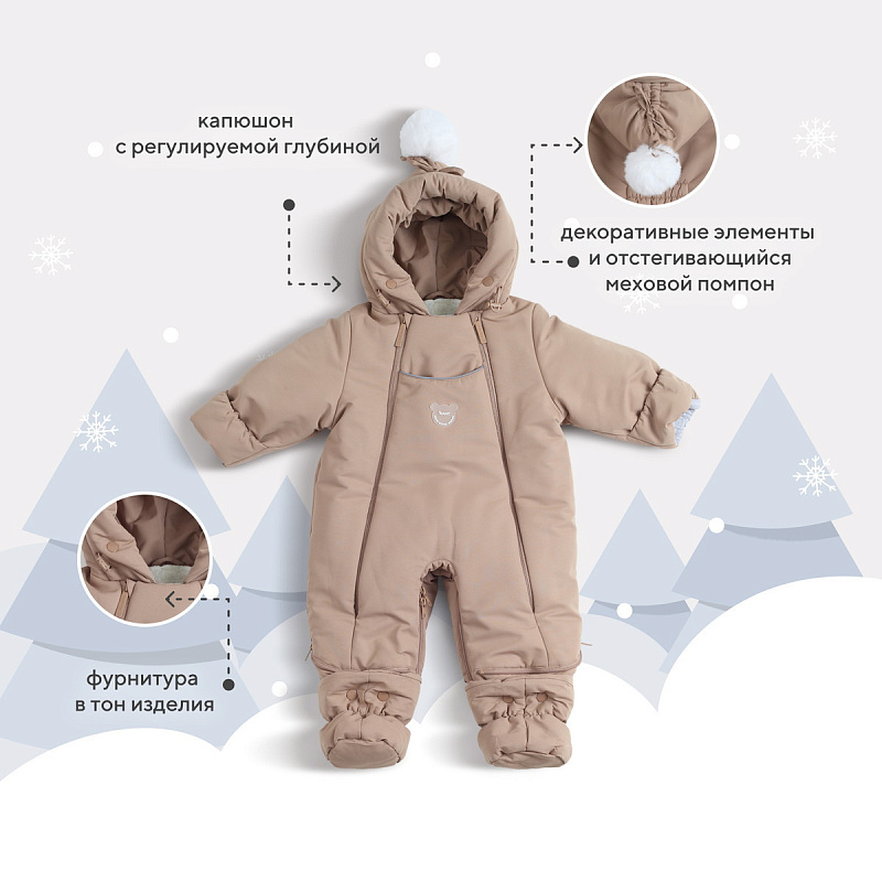 регулируемая глубина капюшона позволяет использовать любые шапки в тандеме с комбинезоном