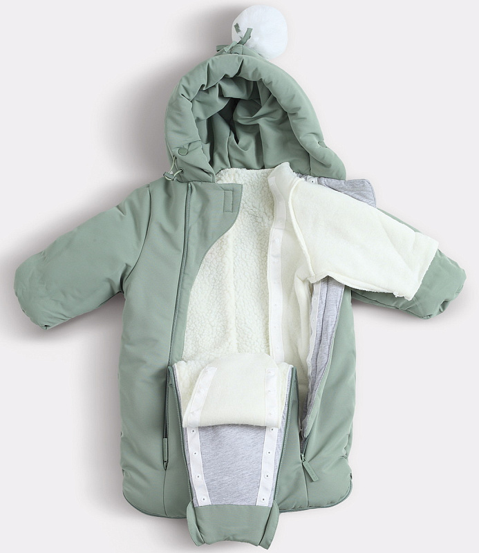 легко трансформируется из конверта с рукавами в комбинезон с полноценными штанинами