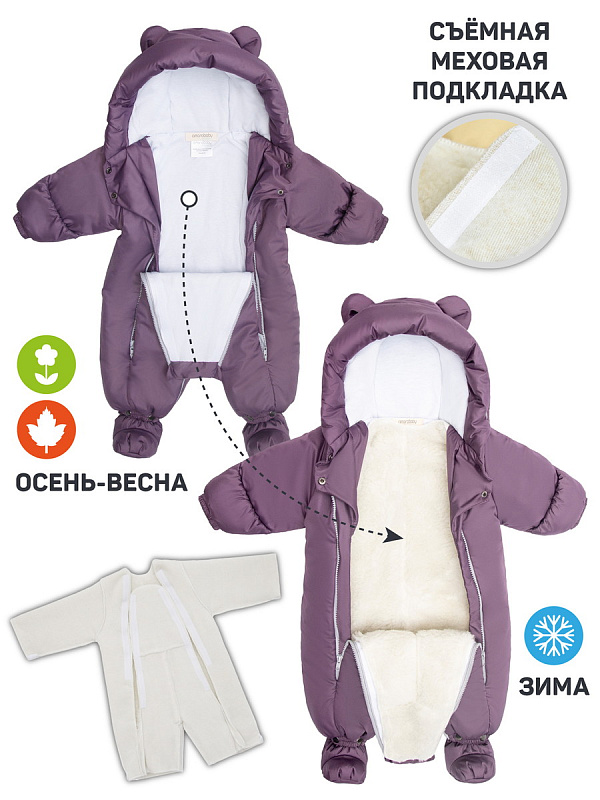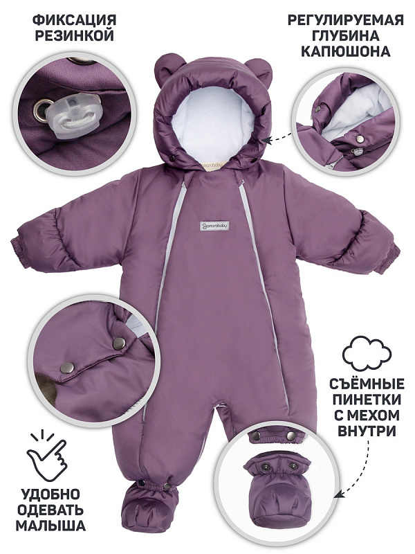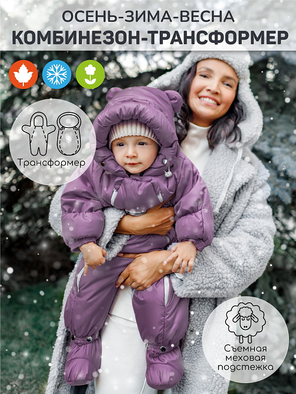 Комбинезон-трансформер зимний меховой AmaroBaby Snowy Travel фиолетовый 68