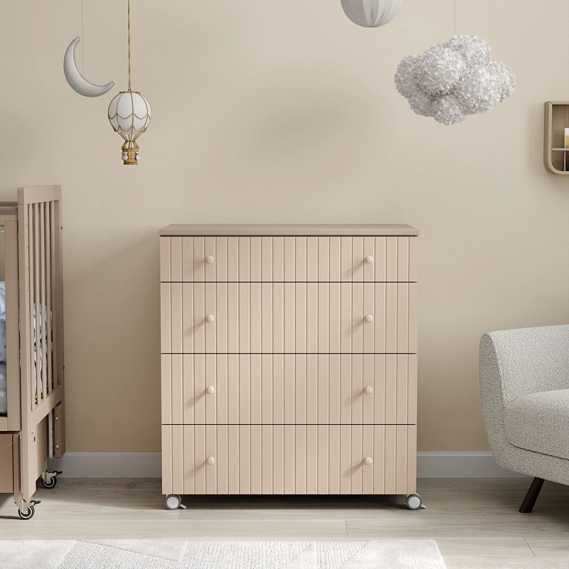 • Фасады имеют вертикальную фрезеровку, которая придает комоду дополнительного шарма.
