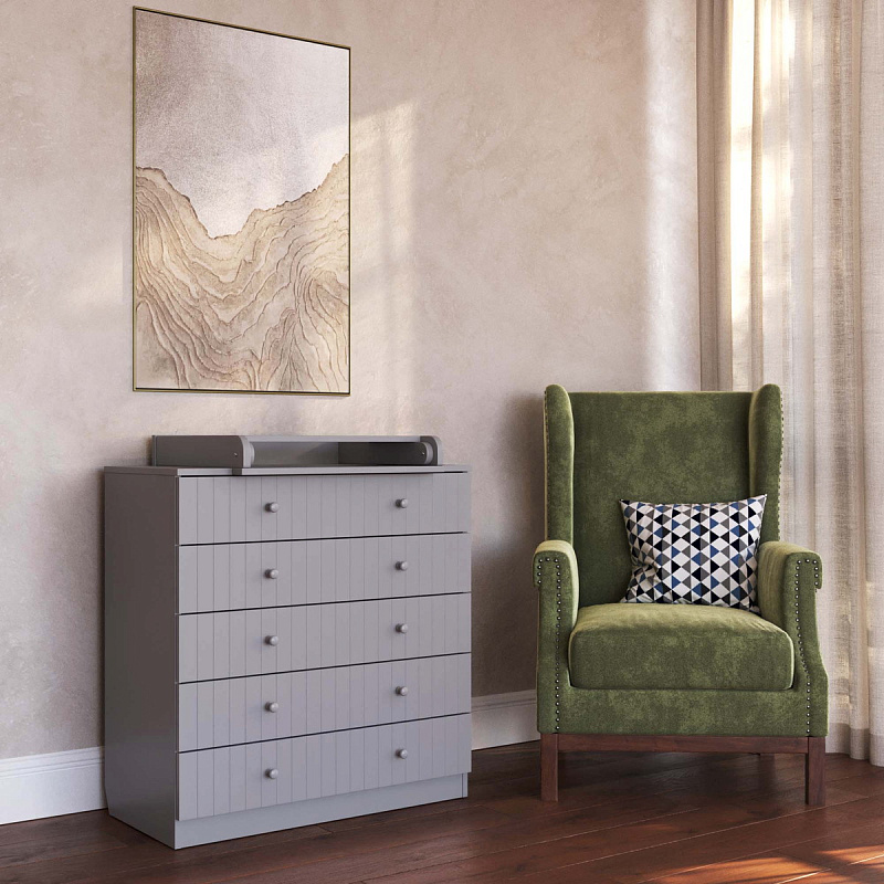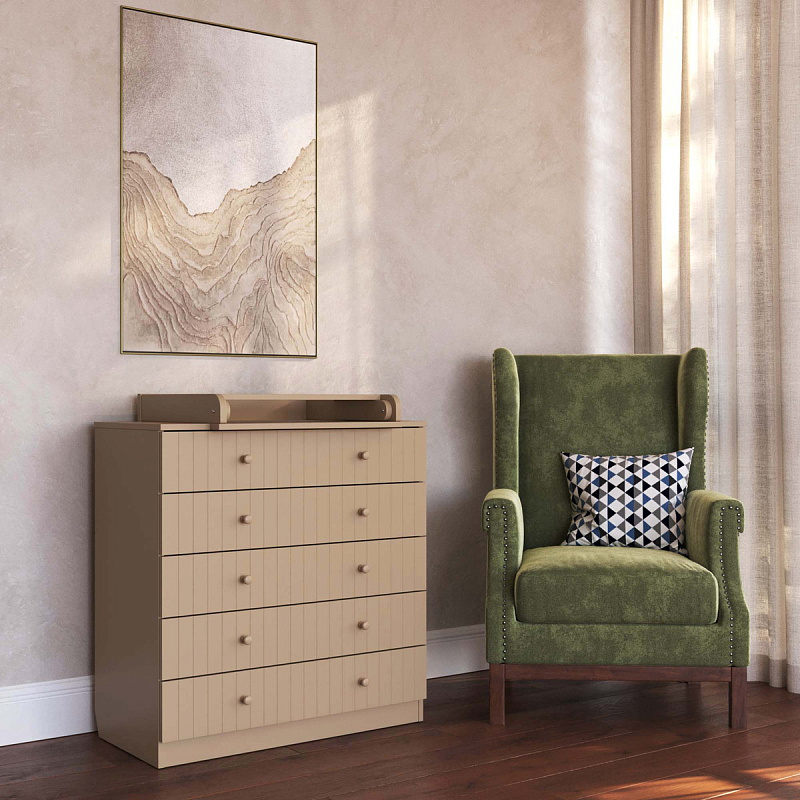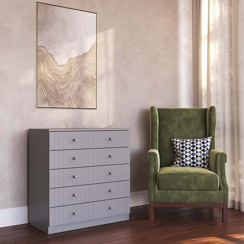 - Фасады имеют вертикальную фрезеровку, которая придает комоды дополнительного шарма.