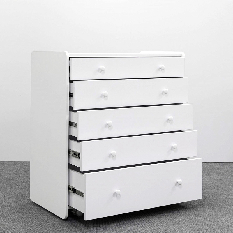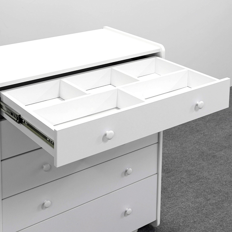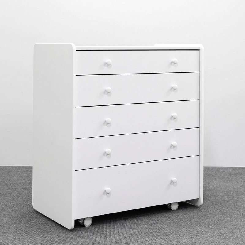 Комод Mari - это комод, созданный в современном стиле с учетом эргономики и трендов в индустрии детских товаров. Комод можно установить на колеса, что позволит беспрепятственно убираться за ним даже женщине. Пять вместительных ящиков на направляющих полного выдвижения с тихим ходом помогут сэкономить место и уложить все вещи по местам. В комплекте к верхнему ящику идет органайзер с секциями, для разграничения пространства. Боковые стенки изготовлены из экологически чистого материала, покрытые износостойкой безопасной краской.