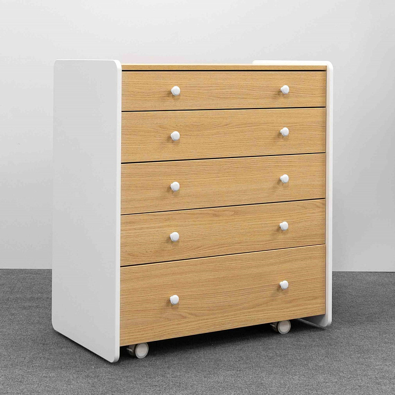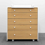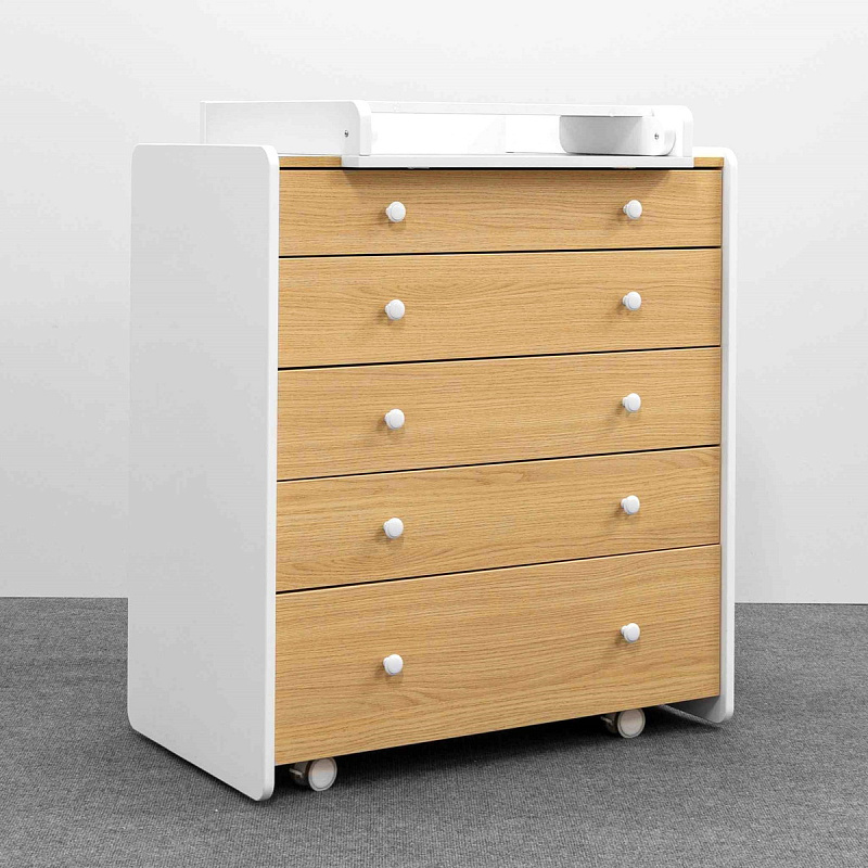 Комод Mari - это комод, созданный в современном стиле с учетом эргономики и трендов в индустрии детских товаров. Комод можно установить на колеса, что позволит беспрепятственно убираться за ним даже женщине. Пять вместительных ящиков на направляющих полного выдвижения с тихим ходом помогут сэкономить место и уложить все вещи по местам. В комплекте к верхнему ящику идет органайзер с секциями, для разграничения пространства. Боковые стенки изготовлены из экологически чистого материала, покрытые износостойкой безопасной краской.