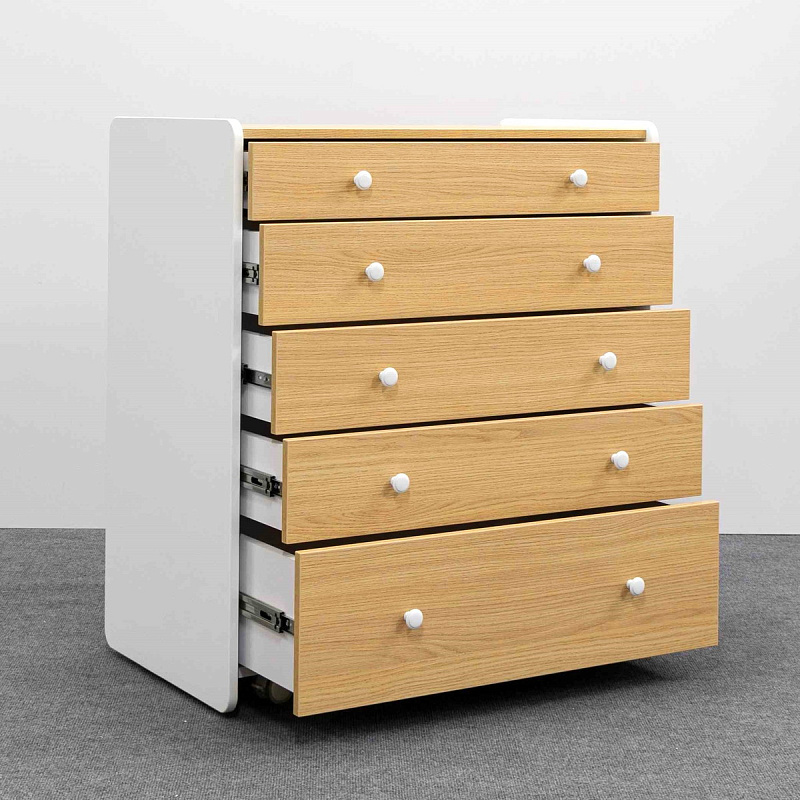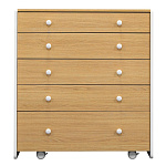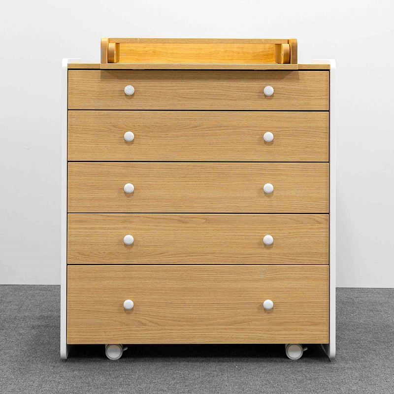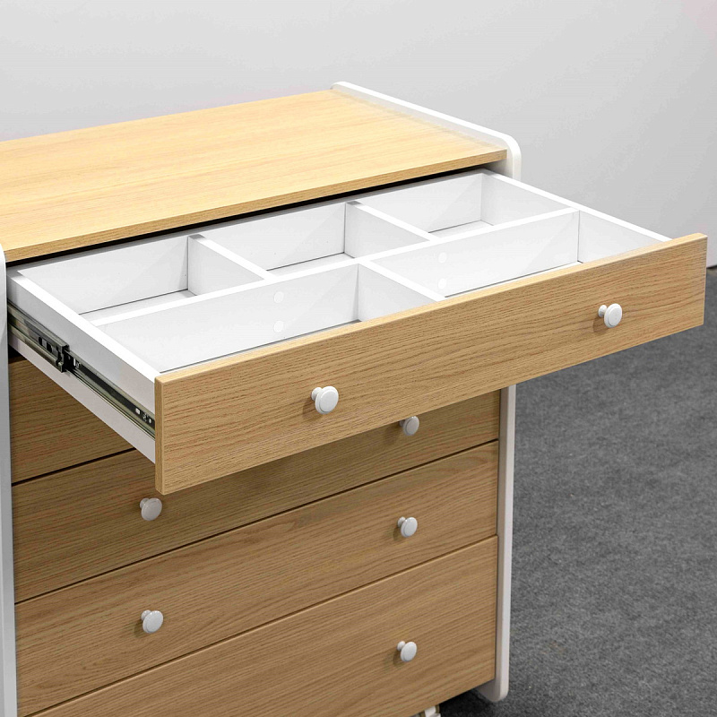 Комод Mari - это комод, созданный в современном стиле с учетом эргономики и трендов в индустрии детских товаров. Комод можно установить на колеса, что позволит беспрепятственно убираться за ним даже женщине. Пять вместительных ящиков на направляющих полного выдвижения с тихим ходом помогут сэкономить место и уложить все вещи по местам. В комплекте к верхнему ящику идет органайзер с секциями, для разграничения пространства. Боковые стенки изготовлены из экологически чистого материала, покрытые износостойкой безопасной краской.