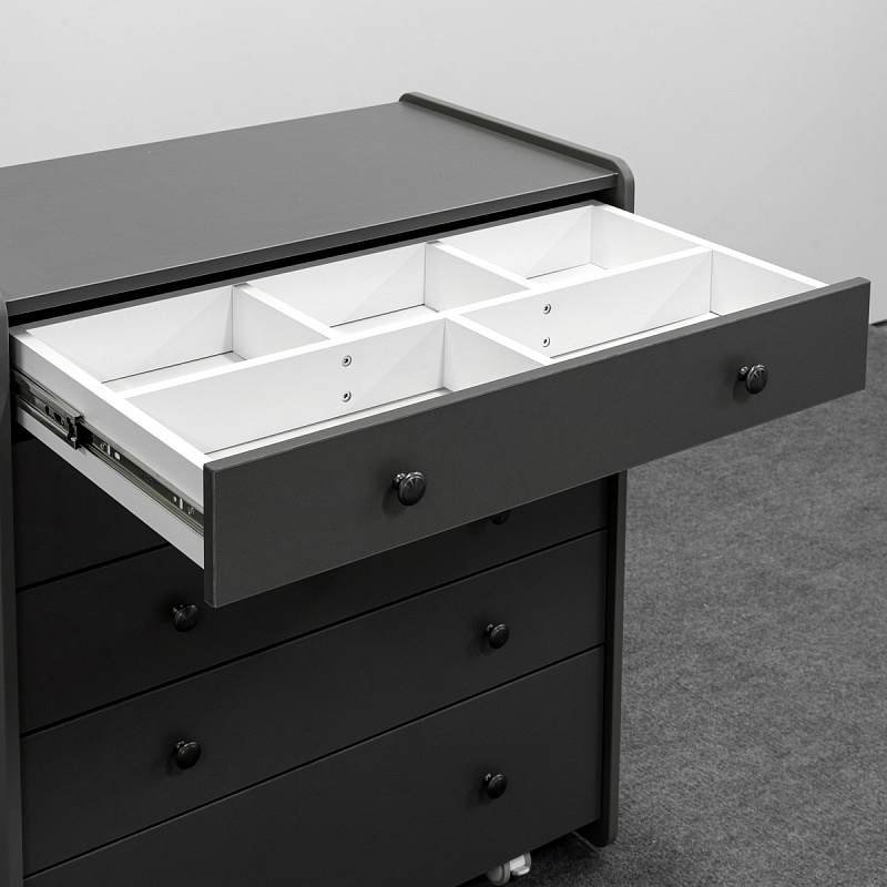 Комод Mari - это комод, созданный в современном стиле с учетом эргономики и трендов в индустрии детских товаров. Комод можно установить на колеса, что позволит беспрепятственно убираться за ним даже женщине. Пять вместительных ящиков на направляющих полного выдвижения с тихим ходом помогут сэкономить место и уложить все вещи по местам. В комплекте к верхнему ящику идет органайзер с секциями, для разграничения пространства. Боковые стенки изготовлены из экологически чистого материала, покрытые износостойкой безопасной краской.