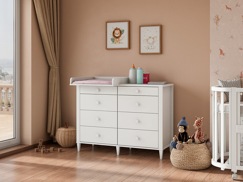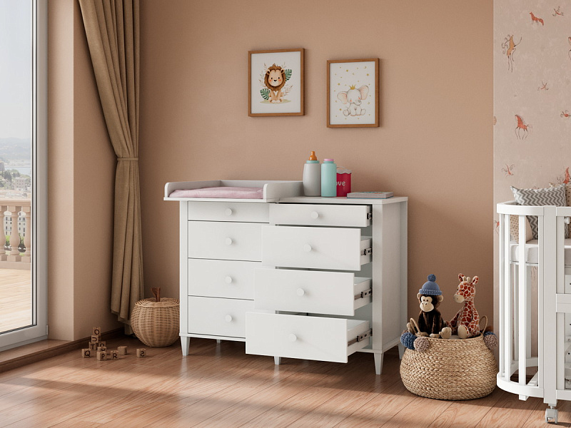 Окунитесь в мир комфорта, стиля и безупречной функциональности! Lunna Astin МДФ – это не просто комод, это ваш верный союзник в трогательной заботе о самом дорогом. Его бесшумные доводчики создают атмосферу покоя, прочные ножки дарят уверенность, а продуманные органайзеры помогают сохранить порядок. Съемный пеленальный столик делает уход за младенцем легким и приятным. Lunna Astin МДФ – ваш островок гармонии в океане материнства.
