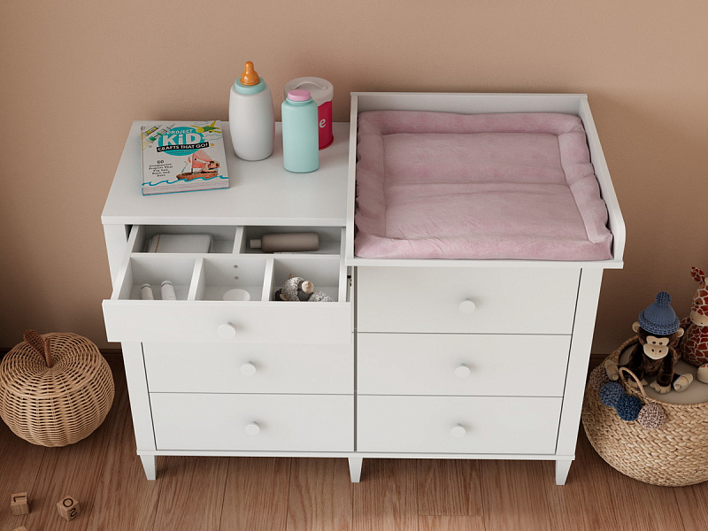 Пеленальный столик, легко крепится с любой стороны, даря свободу и удобство в уходе за малышом.