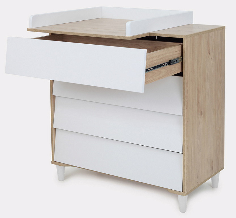 - комод дополнен откидным бортиком, превращающим его в полноценный пеленальный столик. Когда малыш подрастёт, бортик можно будет снять