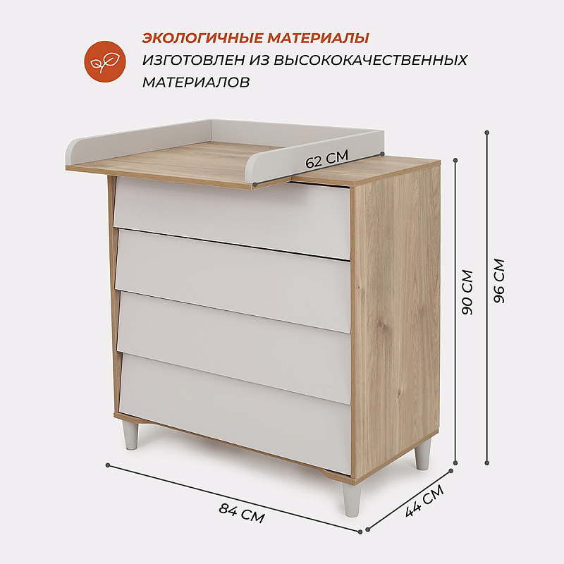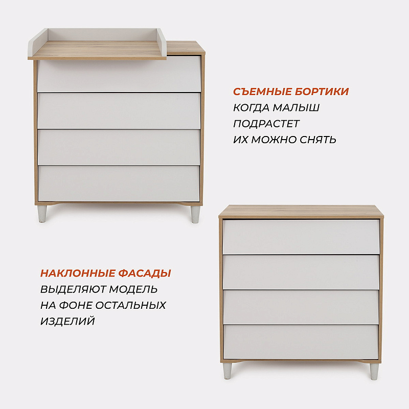 - комод дополнен откидным бортиком, превращающим его в полноценный пеленальный столик. Когда малыш подрастёт, бортик можно будет снять