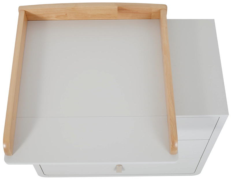 комод дополнен съемным бортиком, превращающим его в полноценный пеленальный столик. Бортик можно установить в двух положениях - слева и справа.