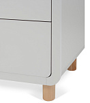 плавные линии бортика не только рифмуются с обтекаемым фасадом комода и ножками в форме цилиндров, но и обеспечивают безопасность (старший ребенок не наткнется на острый угол пеленальной накладки)