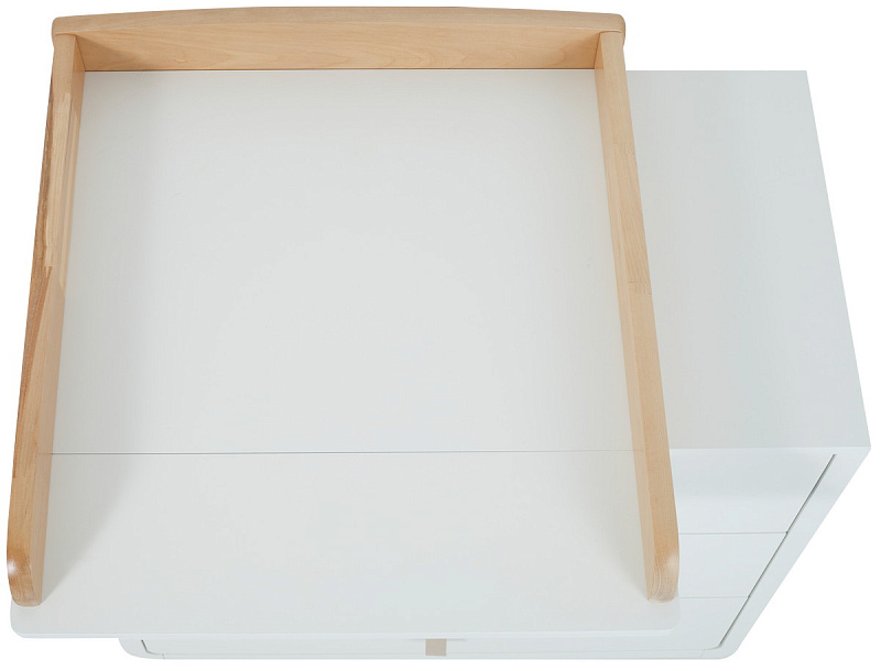 комод дополнен съемным бортиком, превращающим его в полноценный пеленальный столик. Бортик можно установить в двух положениях - слева и справа.