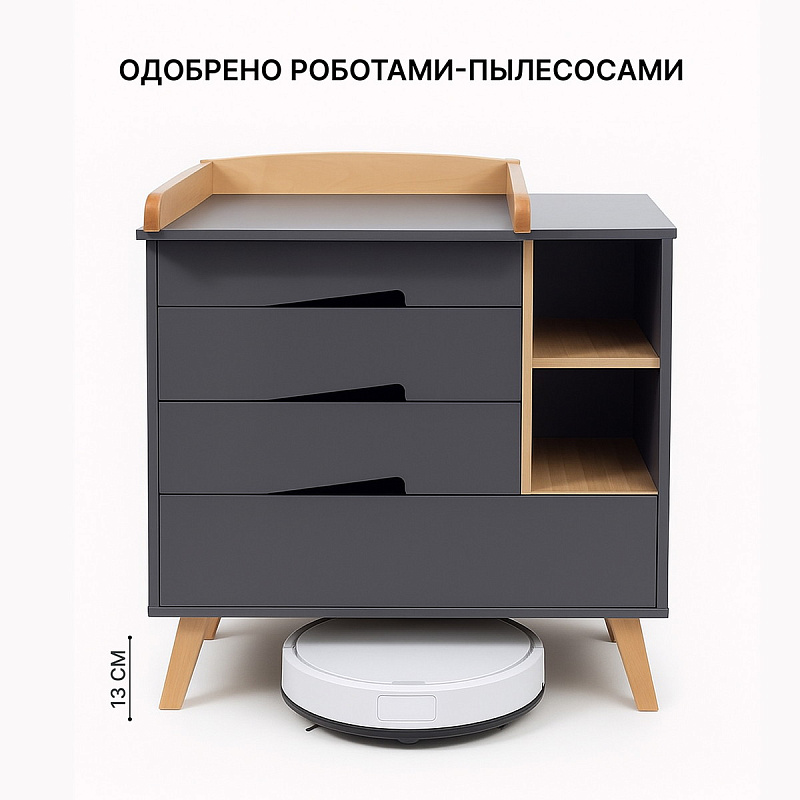 4 вместительных выдвижных ящика бесшумны - они не потревожат спящего кроху