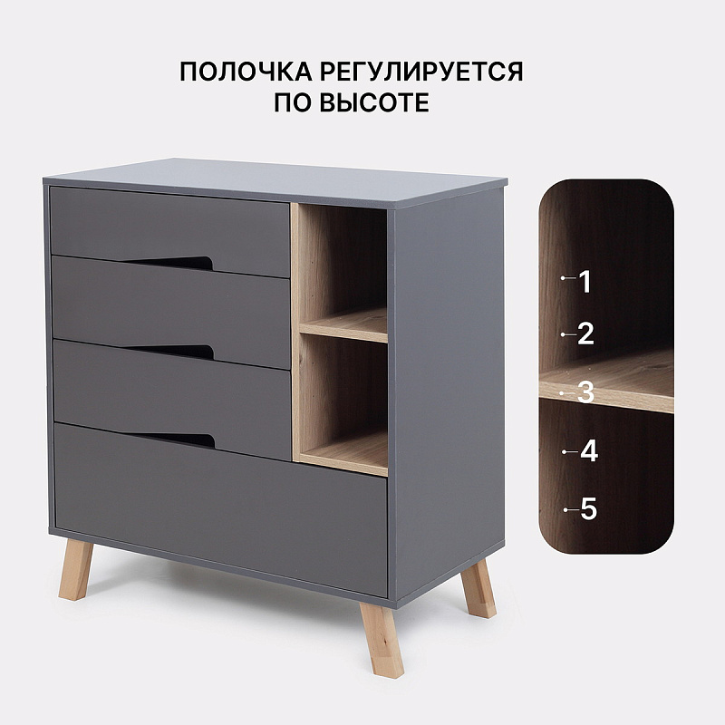 Комод Rant Lago Pro с органайзером, 80 см, 4 ящ Moon Grey
