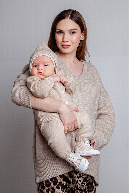 Комплект 2 предмета НаследникЪ Выжанова кардиган с капюшоном и брюки НВ6023 ЧЗ бежевый 62Нет оценокХарактеристики