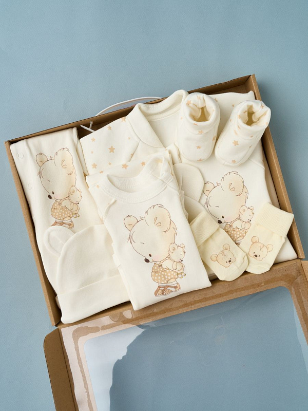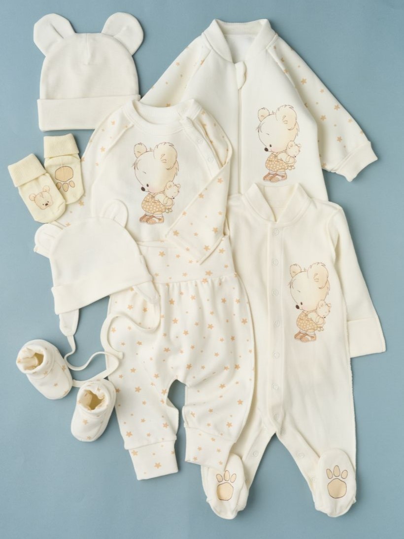 Комплект 8 предметов Little Star Мишка Малыш в коробке (футер, интерлок) 20248 (ЧЗ-мз) крем 56