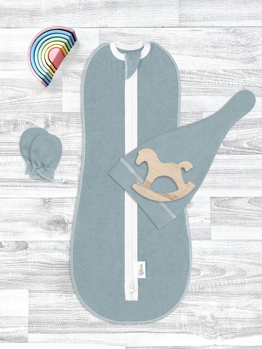 Комплект для новорождённого Mjolk Baby Blue пеленальный кокон, шапочка, антицарапки 56