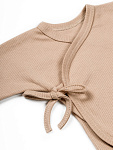 Комплект на выписку для малышей выполнен из 100% хлопка, ткань «лапша» хорошо дышит, не вызывает аллергии, нежная и мягкая. Текстура ткани лапша делает комплект уникальным и интересным.