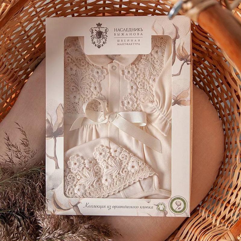 Может ли красивое быть безопасным?! Мы говорим ДА! И коллекция из органического хлопка от Швейной Мануфактуры НаследникЪ Выжанова это доказывает! Изысканный и невероятно красивый комплект на выписку из органического хлопка. В комплект входит комбинезон и чепчик, украшенные ажурным хлопковым кружевом. Конструкция комбинезона продумана так, что малышу в нем будет максимально комфортно.