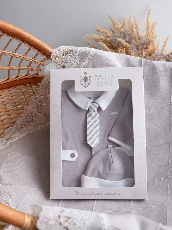Комплект на выписку НаследникЪ Выжанова для мальчика 2 пр. 01009-02004 ЧЗ серый 56Нет оценокХарактеристики