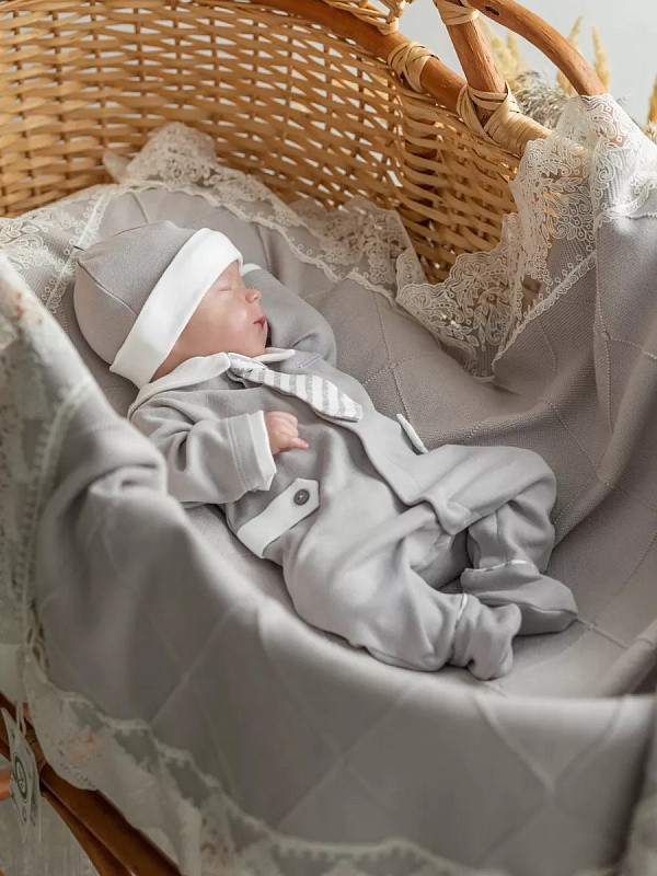 Комплект на выписку НаследникЪ Выжанова для мальчика 2 пр. 01009-02004 ЧЗ серый 56